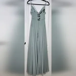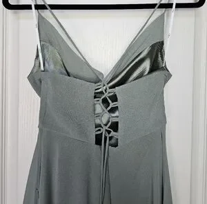 You can easily envision yourself dancing the night away in this airy chiffon dress, which includes a cowl neckline and a lace-up design at the back that’ll definitely do all the flirting for you. A thigh-high side slit accents the flowy, A-line maxi skirt, creating the perfect balance of coyness and elegance. Hidden back zipper/clasp.