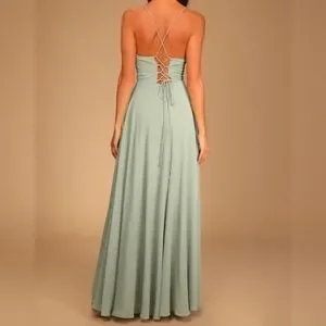 Lulus Romantically Speaking Sage Green Cowl Lace-Up Back Maxi Dress
