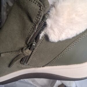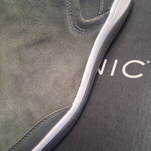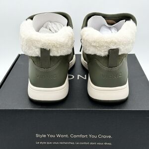 Stylish Vionic packaging with gray and white tones. Sleek and modern look. green olive