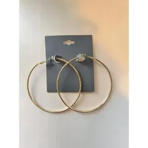Target Zone Womens Large Gold Tone 3" Textured Ribbed Hoop Earrings New
