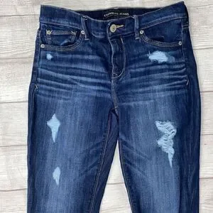 Express women 8 cotton blend mid rise distressed cropped legging blue