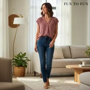 This chic Fun2Fun blouse combines comfort and style with its relaxed fit, lightweight fabric, and eye-catching white speckle print on a mauve background.