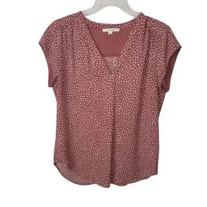 Fun2Fun Womens Mauve V-Neck Cap Sleeve Blouse With White Speckle Print - Size M