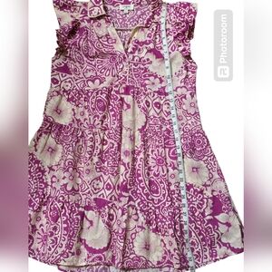 Umgee Vibrant Pink and Cream Patterned Mini Dress