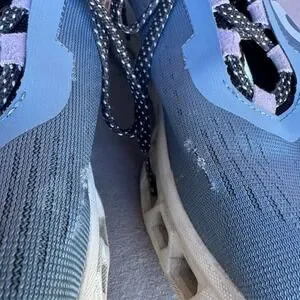 The product is a pair of On Cloudmonster women's running sneakers in blue and green colorblock, designed for size 9.5 UK (41 EU). These athletic shoes feature a cushioned and lightweight design, providing comfort and breathability for performance activities. The mesh upper material ensures a standard width fit, making them suitable for a variety of athletic pursuits. With the CloudTec product line, these sneakers offer a stylish and functional option for active women looking for quality footwear.