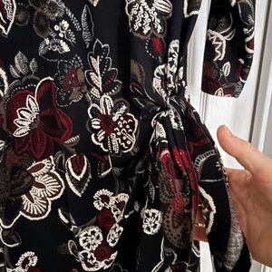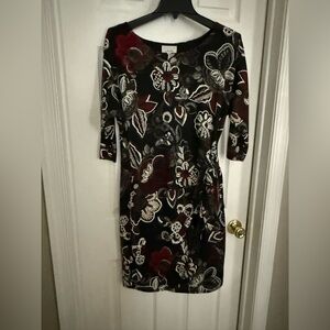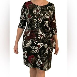 Signature by Robbie Bee Black and Burgundy Floral Dress / fully lined / size M