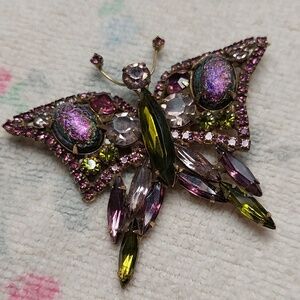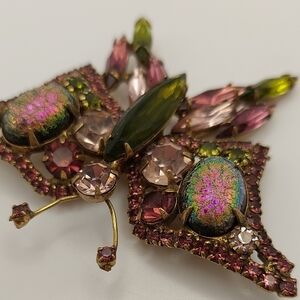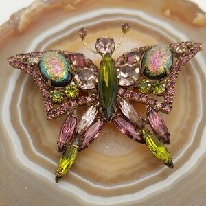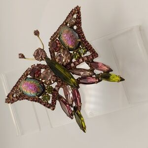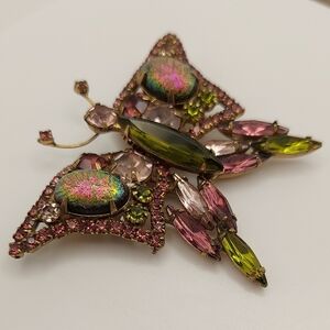 Vintage Butterfly Brooch Mid Century Multicolor Glass Crystals