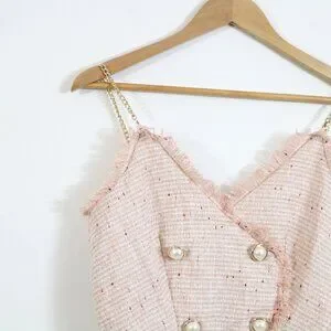 *SHEIN Lavender Dress for Women Surplice Neck Chain Straps Tweed Cami Romper