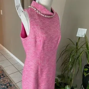 NWOT Lilly Pulitzer 10 Dress Portia Pink Shimmer Pearl Collar Sleeveless Tweed