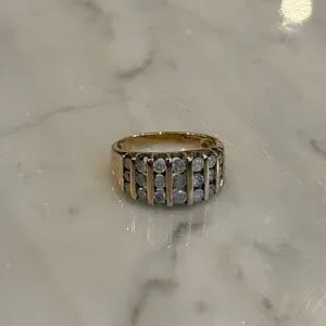This stunning women's ring features a beautiful combination of gold and silver tones, perfect for adding a touch of elegance to any outfit. Its intricate design makes it a standout piece in any jewelry collection.