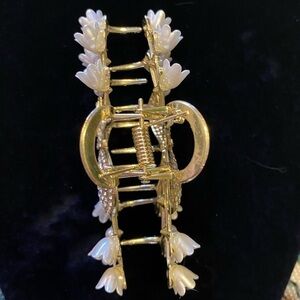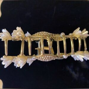 Add a touch of glamour to your hairdo with our exquisite rhinestone and gold bow hair clip. Adorned with delicate imitation pearl flowers, this accessory effortlessly combines sophistication with charm. The detachable imitation Pearl tassels allow for a customizable and versatile look, ensuring you can style it to match any occasion. With its elegant design and intricate detailing, this hair clip is the perfect accent to elevate any ensemble, making it a must-have for every fashion-forward individual.