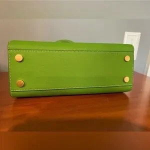 Stylish green satchel by Kate Spade with elegant gold accents. Featuring a sleek design with a top handle. Perfect for adding a pop of color.