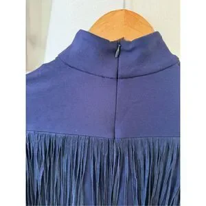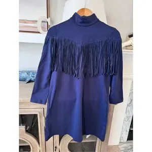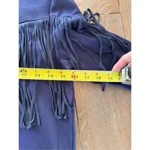 Tuckernuck Dress Women Navy Blue Cowgirl Suede Fringe Long Sleeve Size XSmall