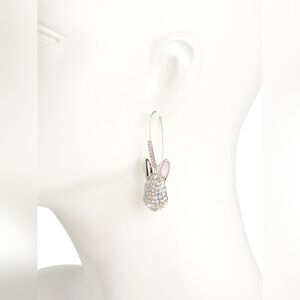 These whimsical spring-inspired dangle earrings feature an elegant long ear wire paired with a playful bunny, adorned with sparkly stones.