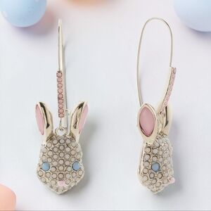 NEW Betsey Johnson Sparkle Faux Stone Bunny Shepherd Hook Earrings 2 Inches NWT
