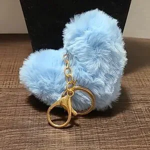 A charming faux fur heart shaped keychain, perfect for adding a touch of whimsy to any space. This plush accent piece features a soft, light blue faux fur that's both visually appealing and inviting to the touch.
