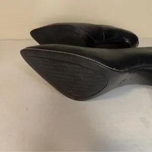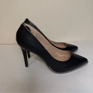 BCBGeneration Harlia Black Pointed Toe Pumps Silver Chain Trim Stiletto Heels