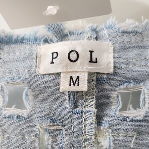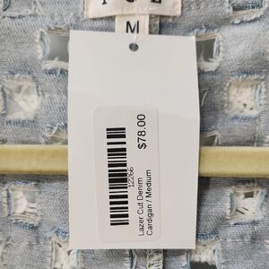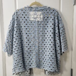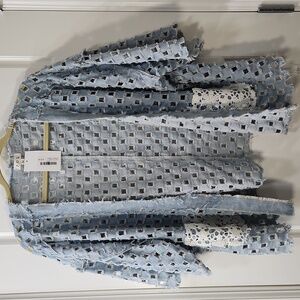 NWT POL Light Blue Laser Cut Open Front Denim Top - M
