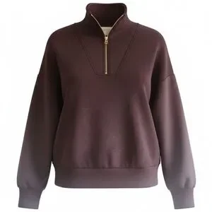Structured half-zip sweatshirt with a stand collar. Gold-tone zipper accent. Relaxed silhouette with dropped shoulders. Ribbed cuffs and hem for a neat finish.