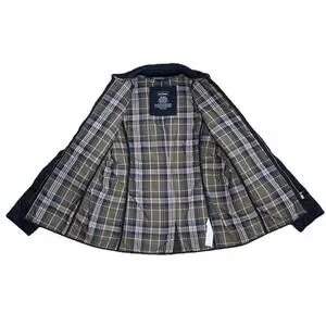 LL Bean Womens XS Quilted Riding Jacket Black Snap Full Zip Plaid Lined Collar