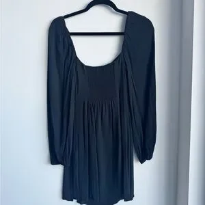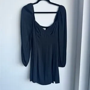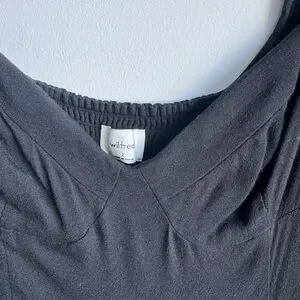 Classic V-neck mini dress by Wilfred. Long sleeves with tailored seams. Smooth, drapey fabric for easy wear. Versatile for day or evening styling.