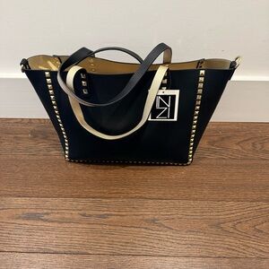 INZI Black & Gold Stud Accent Shoulder Tote (2 Bags in 1)