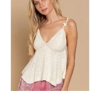 Pol ivory v-neck knit babydoll top size medium