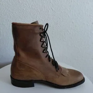 VTG Silver Rebel Brown Leather Lace-Up Boots Fringe Equestrian