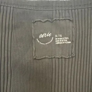 aerie Dark Gray Ribbed Henley Tank