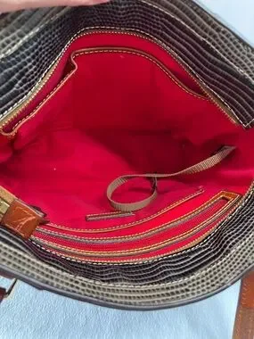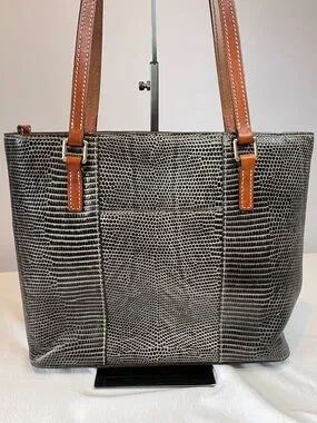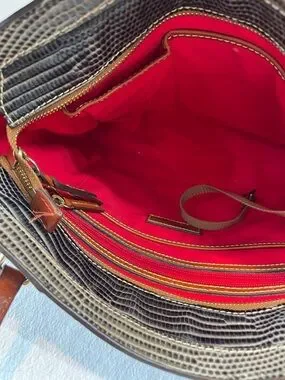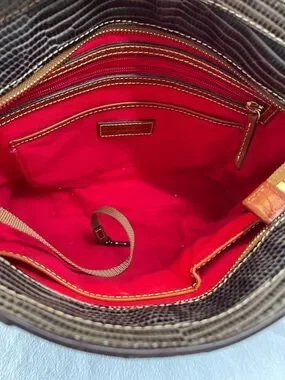 Dooney & Bourke 1975 Embossed Lizard Dark Brown Leather Shoulder Bag