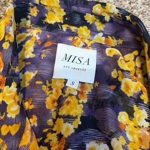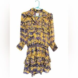 MISA Los Angeles Riona Dress Purple Yellow Floral Ruffle Mini Dress Size S