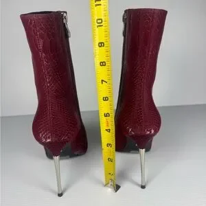 Chic Azalea Wang Calean Burgundy Snake Embssed Stiletto Ankle Boots Size 8 NWT