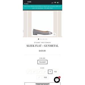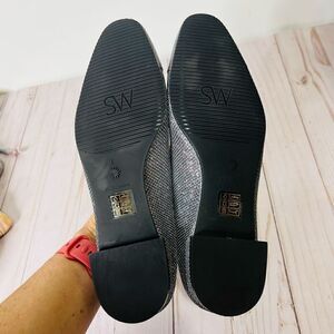 Stuart Weitzman Sleek Flat Gunmetal Silver Pewter Sparkle Glitter Flats NEW! Sz 7