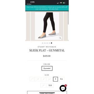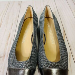 Stuart Weitzman Sleek Flat Gunmetal Silver Pewter Sparkle Glitter Flats NEW! Sz