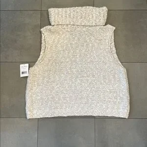 Free People Exaggerated Turtle Neck Sleeveless Sweater in Oatmeal