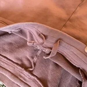 Both are size XL but run a little small I’d say. Bottoms do have a functioning draw string on the inside waist band. Top is a crewneck boxy style.
