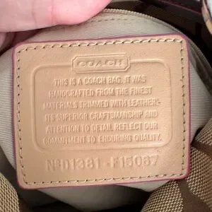 Coach Tan Signature Canvas Shoulder Bag with Pink Trim