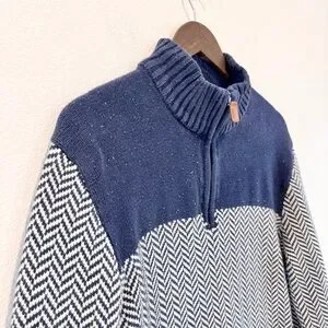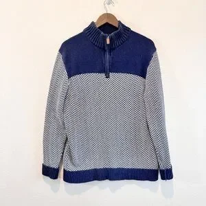 Hope & Henry Coastal Preppy Herringbone Organic Cotton Quarter Zip Sweater L A38
