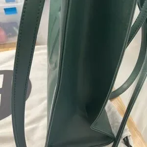 Authentic Telfar Large Shopping Bag in beautiful deep green vegan leather. This iconic unisex tote features the embossed Telfar logo, structured design, top handles, and crossbody strap for versatile wear. Spacious interior perfect for work, travel, or everyday use.