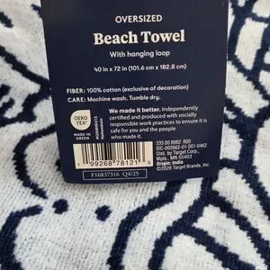 The blue beach towel features a floral vines print with fringe accents on two ends. This towel is made from cotton terry fabric and made in Green by OEKO-TEX. This beach towel is of a great size too - 72in (length) x 40in (width)