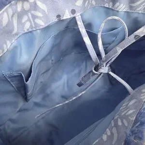 The star medallion fringe canvas tote bag is in a lovely blue shade and has fun fringe accents. It has double straps and a tie to close it. It also features an interior zipper pocket on one side and two little pockets on the other side.