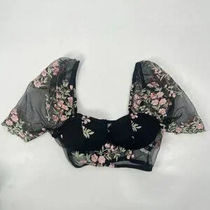 Shein Sheer Crop Top Embroidered Floral Dark Romantic Sz Small