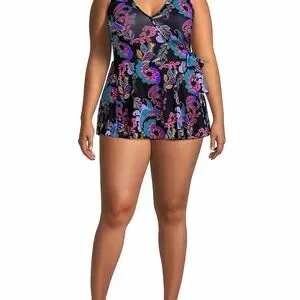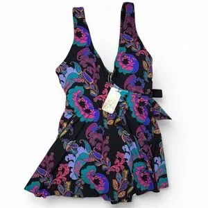 Johnny Was Fatima Wrap Skirt One Piece Swimsuit Black Paisley XL NWT Boho Luxury
