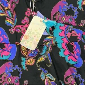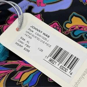 Beautiful Johnny Was Fatima Wrap Skirt One Piece Swimsuit in the vibrant Fatima Black paisley print. Brand new with tags.