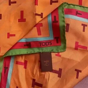 Tod's Orange and Green Silk Scarf