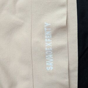 Three seamless bralettes from Savage X Fenty. Soft stretch fabric for daily wear. Adjustable straps for a personalized fit. Smooth, minimal design that layers easily. the white one is the only one that has been worn. but I've washed all three. the white one has a mark on the back.