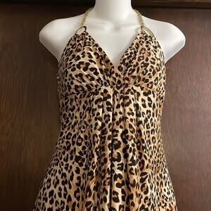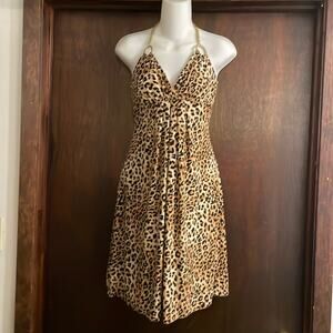 Boston Proper Animal Print Hardware Detail halter Dress Size Small Made in USA