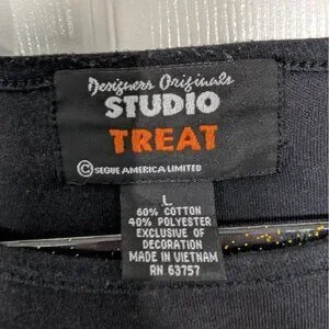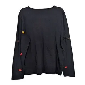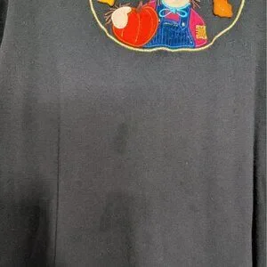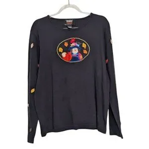 Vintage Designers Originals Studio Treat Womens Black Fall Scarecrow Embroidered Long Sleeve Shirt Size Large