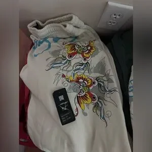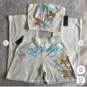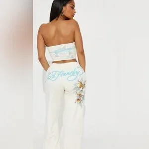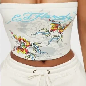 Ed Hardy Cream Tube Top/Sweatpant set with Colorful Butterfly Design