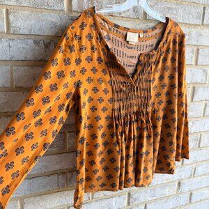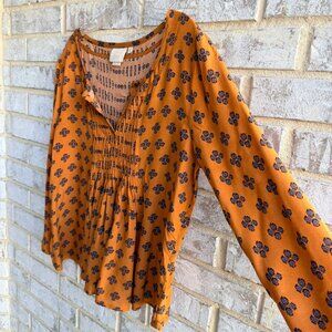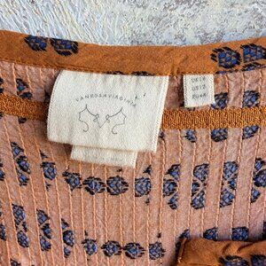 Vanessa Virginia "Madhia" 3/4 Sleeve V-Neck Peasant Geo Blouse Women's Size 12.